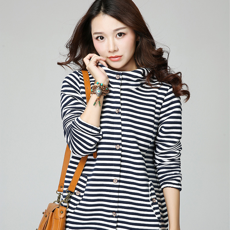 簡介: 主圖來源實拍有模特 貨源類別現貨 面料名稱棉 主面料成分棉 主面料成分的含量90(%) 主面料成分2的含量10(%) 面料2成分聚酯纖維(滌綸) 風格其他 圖案條紋 款式開衫 袖長長袖 工藝印花/印染 貨號YFE1016 產地杭州 品牌萌依莎 是否庫存否 版型修身型 衣長中長款(65cm<衣長≤80cm) 衣門襟單排扣 領型翻領/POLO領