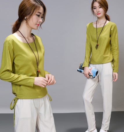2015秋季新款女裝韓版文藝亞麻休閑套裝女秋上衣長(zhǎng)褲棉麻兩件套 /