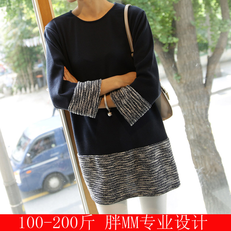 2015新款加肥加大碼胖MM拼接中長(zhǎng)款寬松顯瘦大碼女裝打底衫 /