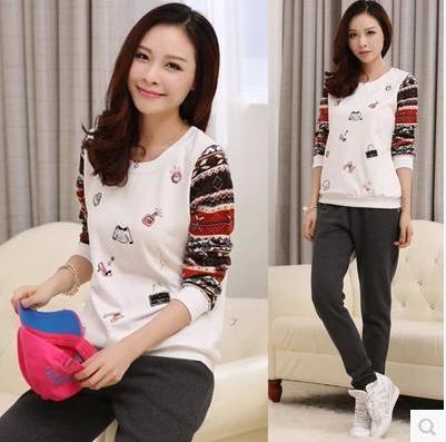 2015新款加肥加大碼秋冬女裝胖MM200斤字母印花衛(wèi)衣打底衫T恤 /