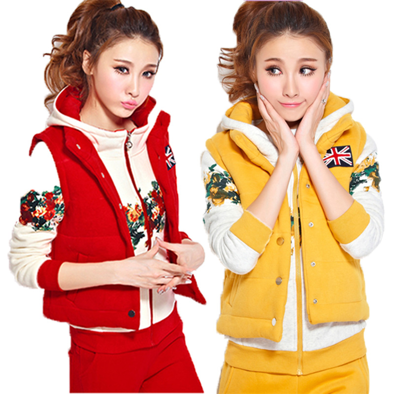 2015秋冬裝加絨加厚純棉連帽大碼韓版休閑套裝運(yùn)動(dòng)服衛(wèi)衣三件套女 /