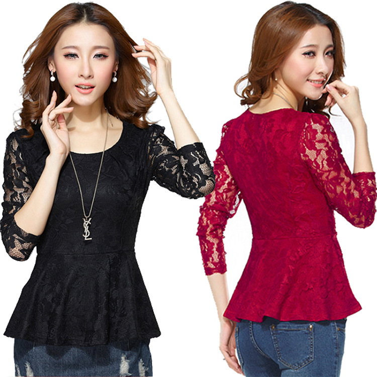 韓國秋季新款女裝上衣網(wǎng)紗鏤空蕾絲衫大碼修身打底衫長袖t恤女 /