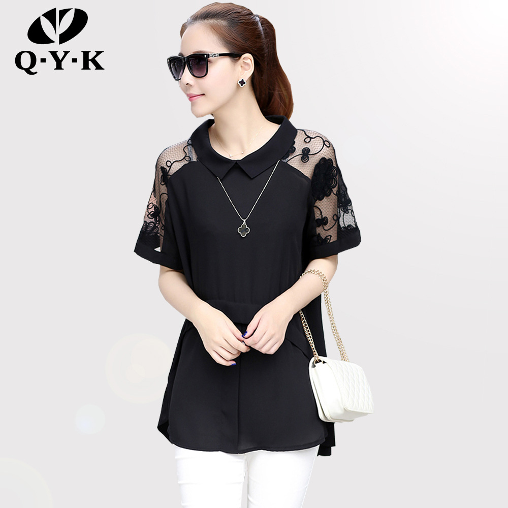 2015春夏裝新款寬松雪紡衫 中長款短袖上衣大碼雪紡襯衫 /