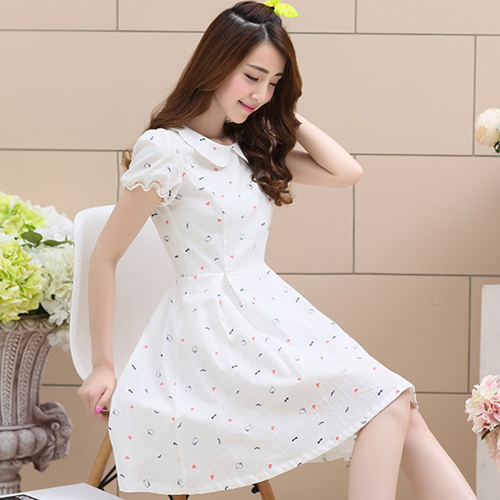 簡介: 貨源類別現貨 主圖來源其他來源 風格韓版 圖案印花 工藝印花/印染 產地廣州 庫存類型整單 款式基本款 組合形式單件 裙長中裙 裙型A字裙 領型娃娃領 袖型泡泡袖 袖長短袖 腰型中腰 衣門襟套頭 上市年份/季節2015夏季 面料名稱棉 主面料成分棉 主面料成分的含量50(%)