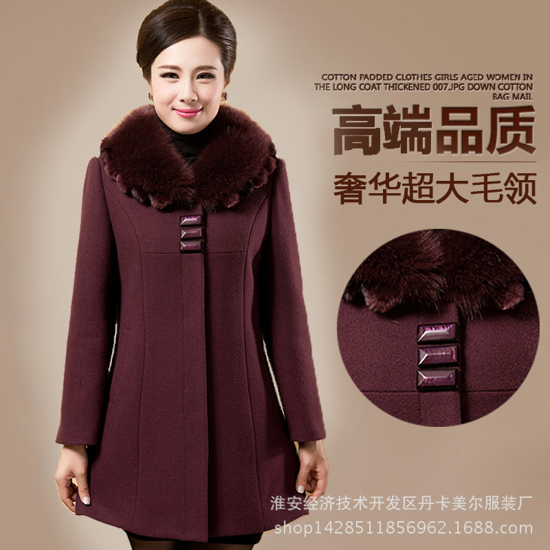 2015中老年女裝秋冬新款羊絨外套 廠家直銷媽媽裝毛領羊絨呢大衣 /
