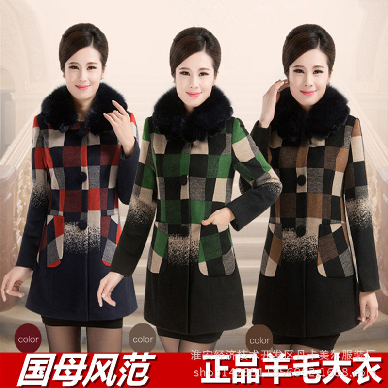 2015新款羊毛大衣中年女裝呢子中老年秋冬裝媽媽裝中長款呢外套 /