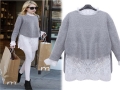 2015歐美大碼女裝秋裝新款胖mm加肥加大針織毛衣蕾絲裙兩件套 /