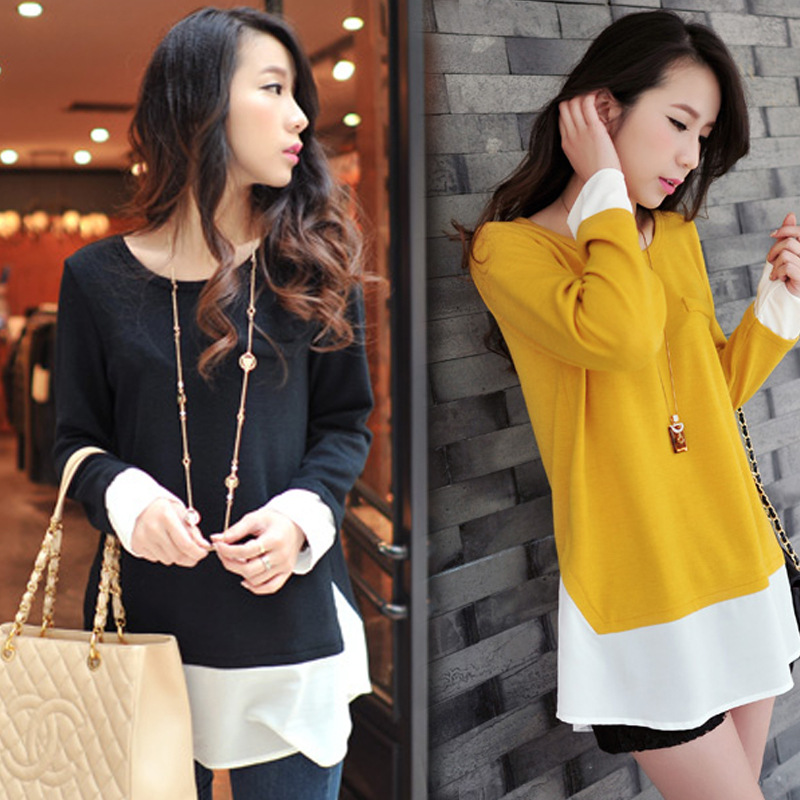秋裝加肥加大碼女裝胖mm大號新款韓版寬松顯瘦假兩件長袖T恤 /