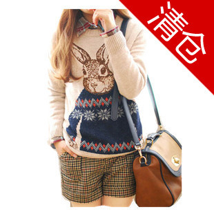 超萌學院風可愛卡通紳士兔子 寬松套頭針織衫毛衣外套 毛衣批發 /