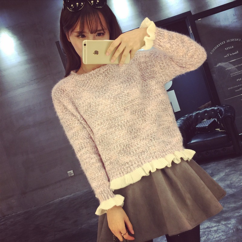 小清新毛衣女秋冬加厚木耳邊韓版套頭學生短款冬款女士針織打底衫 /