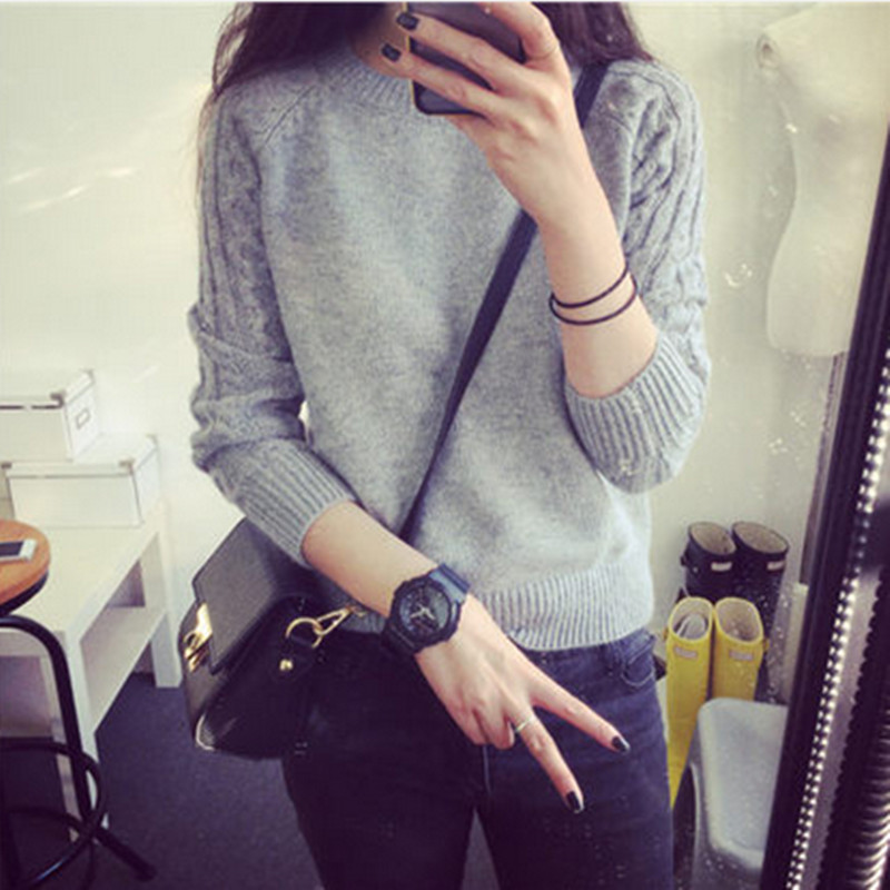2015新款東大門韓國韓版寬松純色短款套頭毛衣女打底針織衫女春秋 /