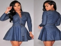 2015時尚修身顯瘦長袖牛仔連衣裙 /