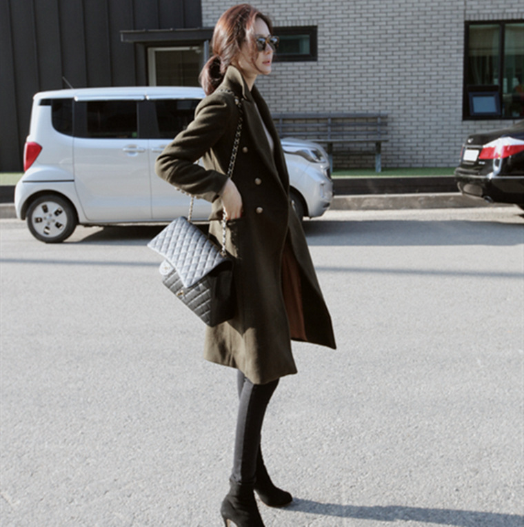 秋冬新款毛呢外套大衣女裝 中長款修身呢子大衣冬裝 /