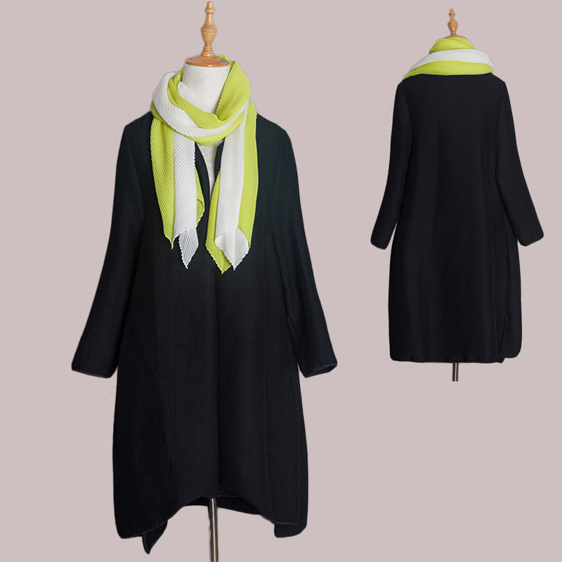 三宅一生2015秋冬新款大衣女裝簡約褶皺中長款風(fēng)衣外套配撞色圍巾 /
