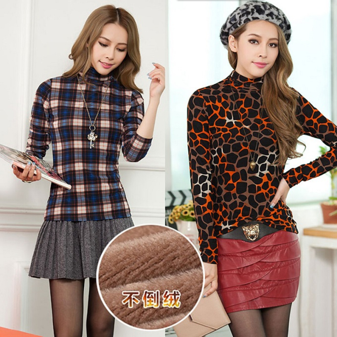 高品質秋高領強彈性大碼女裝冬款長袖t恤加厚女款修身加絨打底衫 /