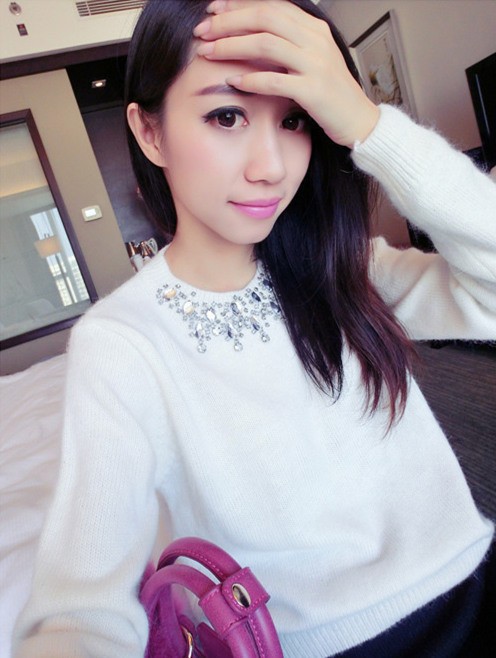 2015秋季新款純色兔毛針織衫時尚水鉆短款毛衣女裝 /