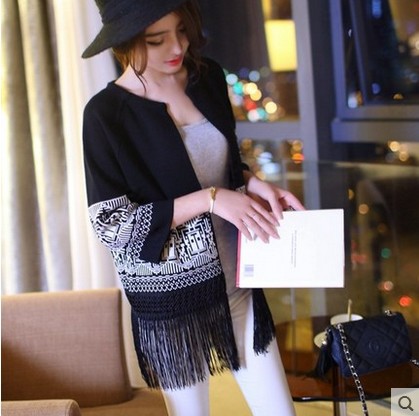 2015秋新款流蘇針織開衫韓版中袖外套披肩女式毛衣 /