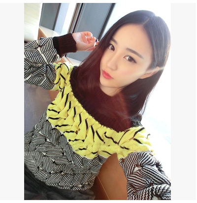 2015韓版明星同款l熒光黑灰撞色鏤空立體寬松毛衣針毛衣廠家直銷 /