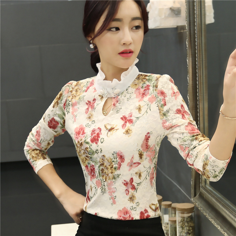 實拍款淑女大碼女裝花色襯衫長袖打底衫潮上衣蕾絲衫女355 /