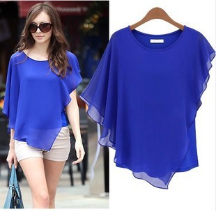 五色五碼 歐美通勤T恤衫荷葉邊短袖雪紡衫上衣女裝蝙蝠衫 /