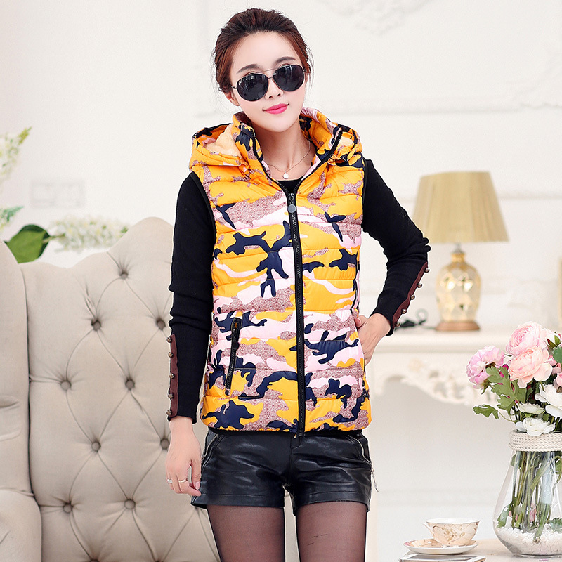 2015韓版秋冬新款加厚男女外套 短款背心棉襖馬甲 迷彩馬夾 /