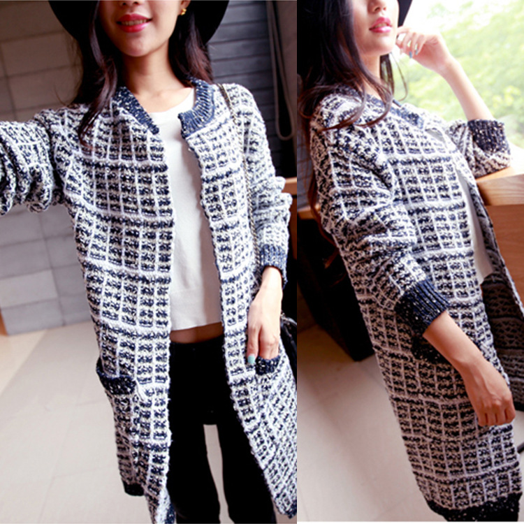 2015秋新款女針織衫開衫女款中長款毛線圓領(lǐng)韓國毛衣毛衣毛衫代發(fā) /