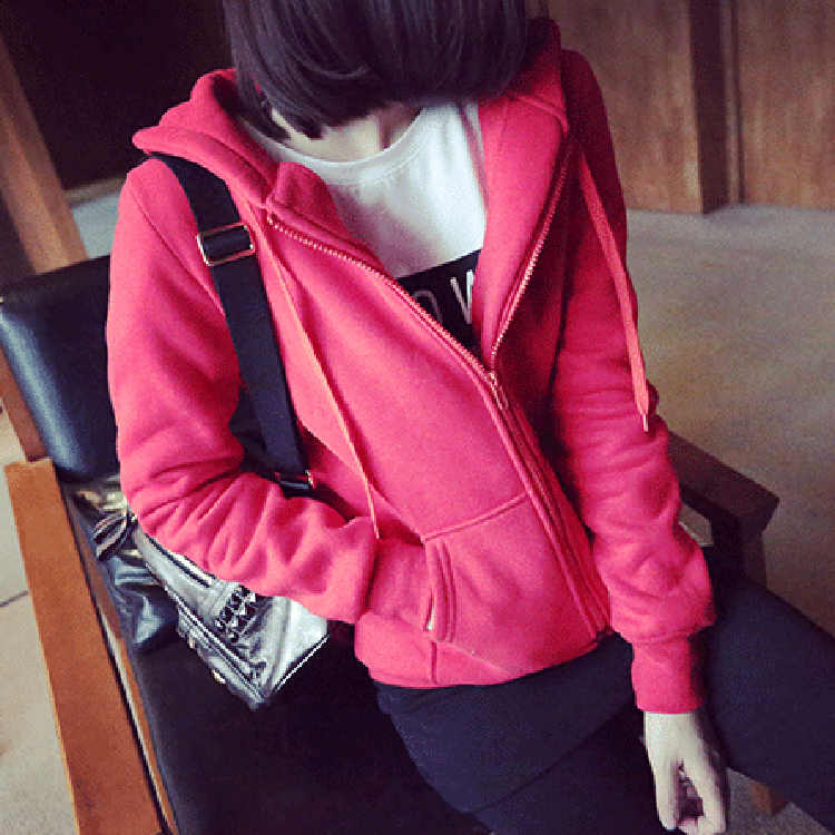 拉鏈長袖抓絨衛(wèi)衣女韓國學(xué)生批發(fā)新款運動2015開衫外套秋冬季女裝 /