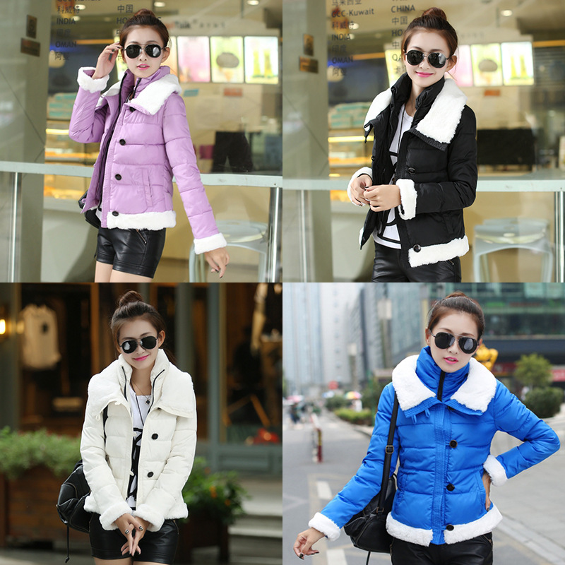 韓版羽絨棉外套小時代同款修身毛領女棉衣批發雙層領加厚女式棉衣 /