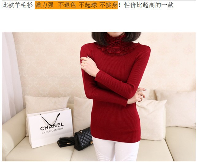 2014秋冬裝新款韓版蕾絲 修身顯瘦高領(lǐng)毛衣針織衫 打底衫女 /