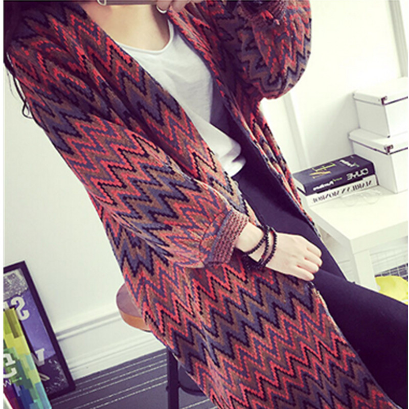 2015秋冬新款女裝日系復古加厚提花百搭波紋寬松長款毛衣外套女 /