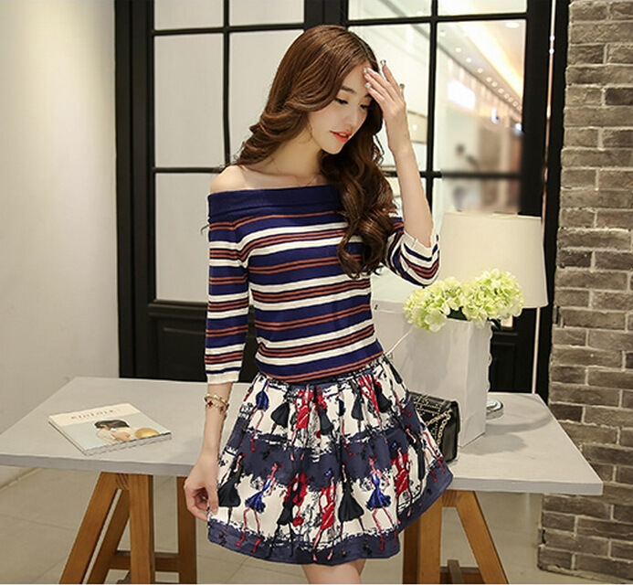 2015秋裝新款韓版秋冬兩件套連衣裙時尚修身顯瘦針織套裝女氣質潮 /
