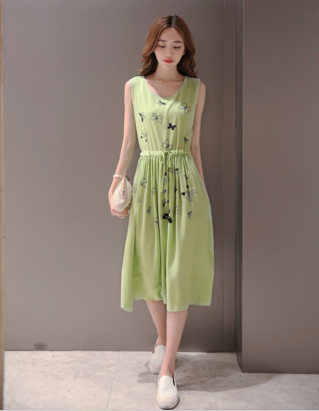 簡介: 貨源類別現貨 主圖來源官方圖片 風格簡約 圖案純色 工藝無 產地廣州 款式基本款 組合形式單件 裙長中長裙 裙型其他 領型圓領 袖型無袖 袖長無袖 腰型中腰 衣門襟套頭 流行元素其他 上市年份/季節2015夏季 面料名稱棉 主面料成分棉 主面料成分的含量100(%)