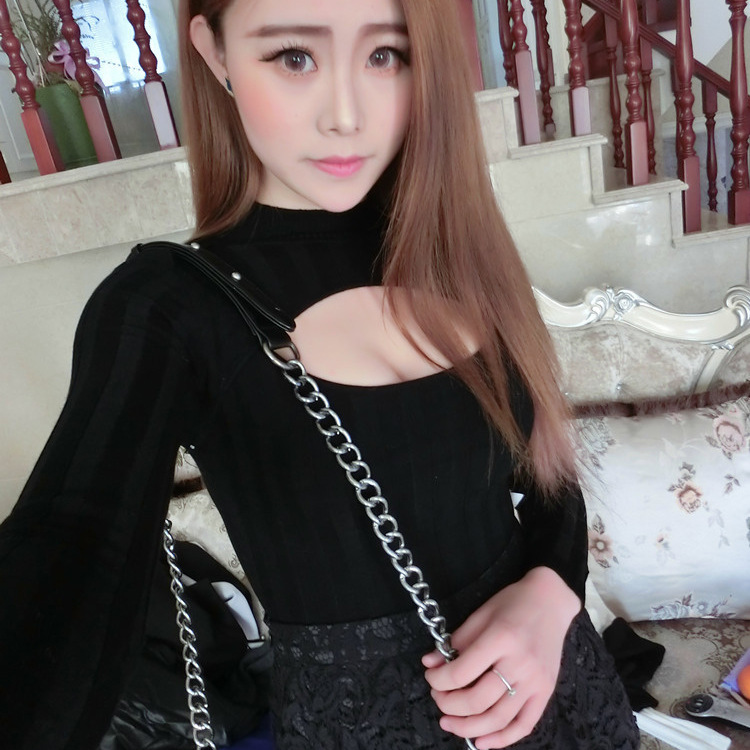 2015春裝新款日本高領毛衣修身套頭開胸時尚性感女式針織打底衫 /