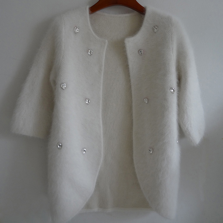 2015秋冬裝女裝新款鑲鉆訂珠圓領燕尾氣質加厚款貂絨毛衣開衫外套 /