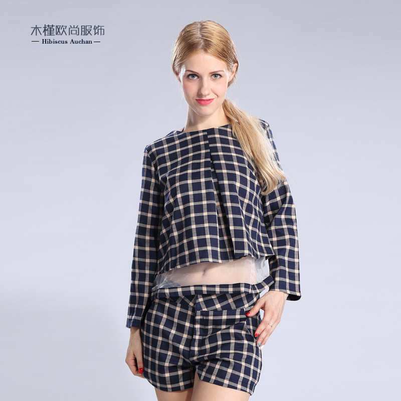 2015歐洲大牌秋季新款女裝潮上衣短褲歐美小香風修身時尚套裝 /