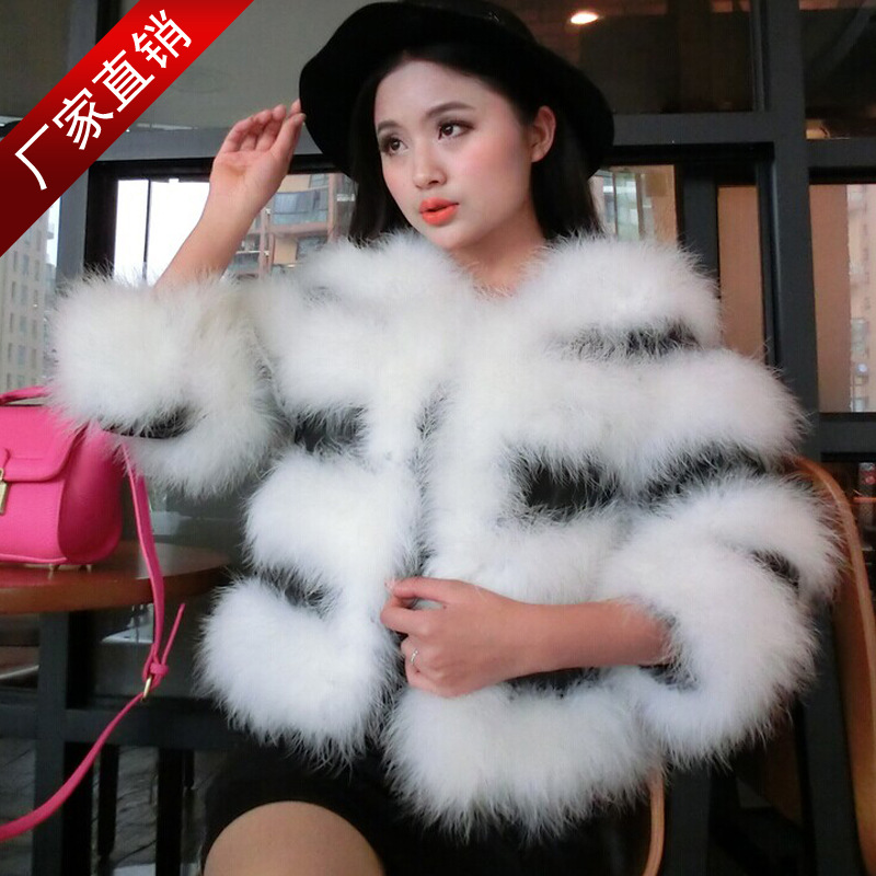 克拉戀人明星同款2015秋冬新款鴕鳥毛皮草修身PU皮拼接短款外套女 /