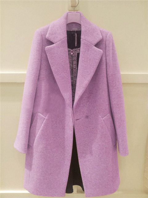 2015秋裝韓版新款修身顯瘦呢子大衣中長款西裝領毛呢外套女裝批發 /
