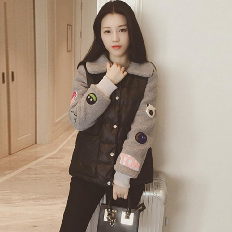 2015秋冬新款 韓國貼布亮片羊羔毛拼接袖棉衣 /