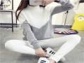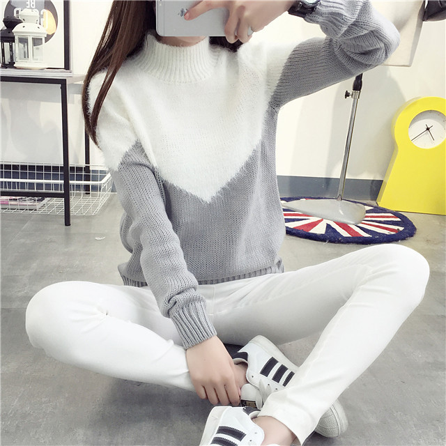 半高領(lǐng)加絨拼接色冬季加厚毛衣女套頭打底針織衫秋冬韓版學生外套 /