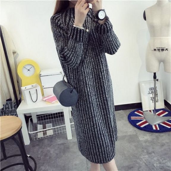 中長款加厚冬季毛衣裙女套頭針織衫秋冬韓版修身學生外套學院風潮 /