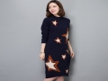 半高領貂絨毛衣連衣裙修身包臀氣質打底衫長袖星星圖案中長款冬裙 /