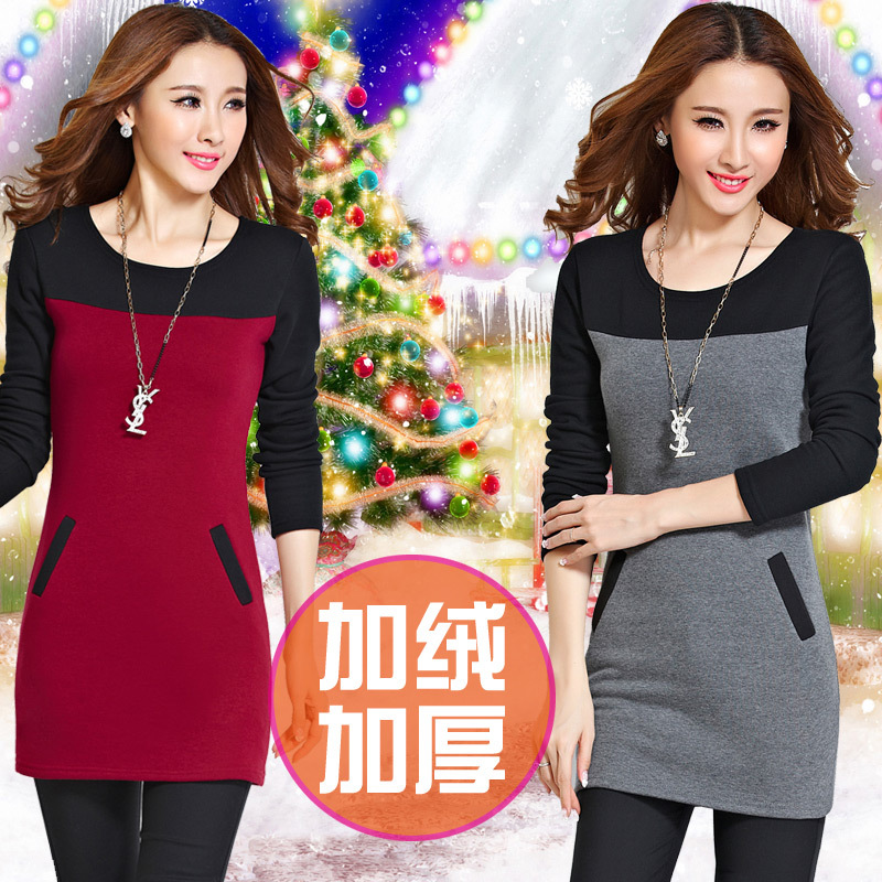 2015春裝新款大碼修身包臀連衣裙長款加絨加厚長袖打底衫 /