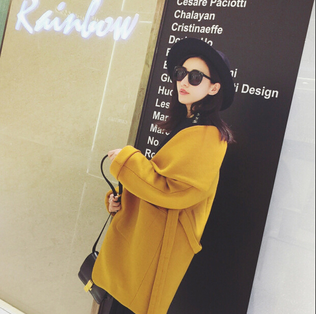 小宜定制冬季女裝新款廓形系帶大翻領呢大衣外套HL15 /