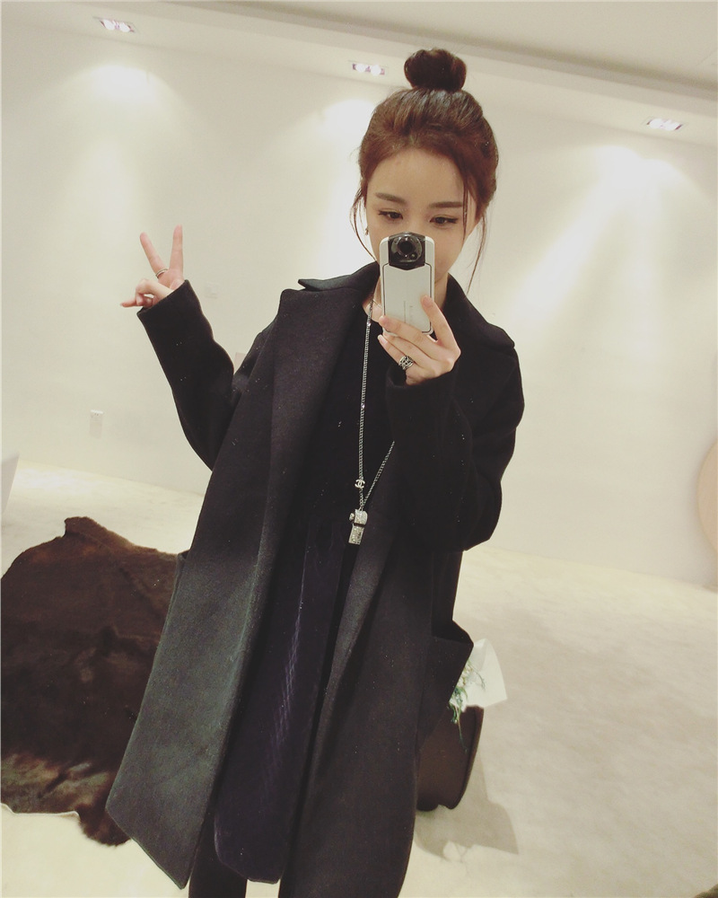 于momo定制 冬裝韓版大翻領長款保暖夾棉毛呢外套羊毛大衣CL89 /