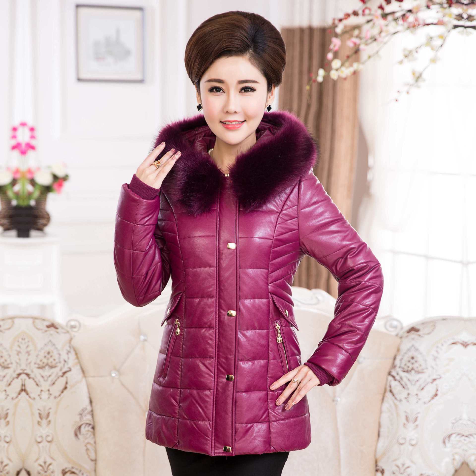 2015中老年女裝冬裝外套 時尚媽媽裝大毛領高檔加棉PU皮衣批發 /