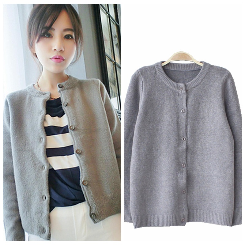 秋冬優質柔軟日式清新糖果色圓領開衫毛衣外套 /