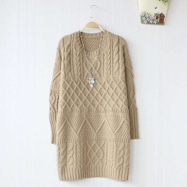 秋冬新款熱銷韓版寬松麻花編織針織衫長款毛衣套頭衫女 /