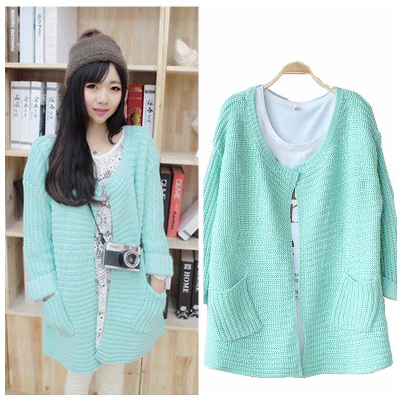 秋冬新款日系糖果色蝙蝠袖卷袖口無扣針織衫開衫毛衣外套女 /