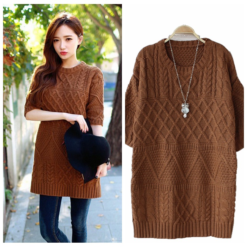 秋冬新款韓版中長款粗毛線麻花圖案中袖厚寬松毛衣女套頭外套 /