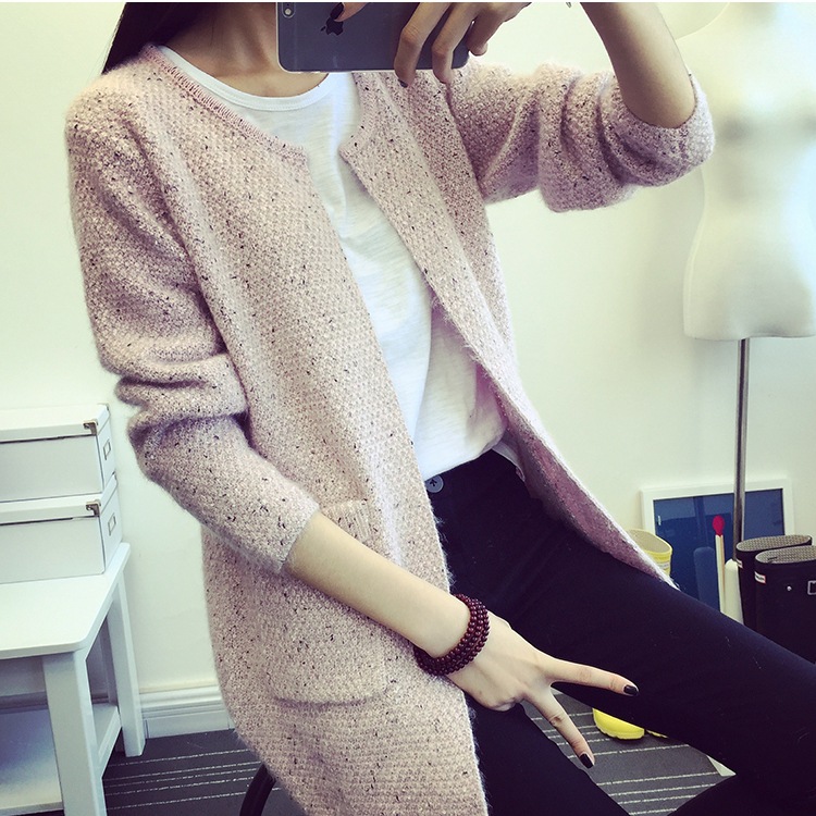 毛衣針織衫開衫女2015春秋裝新款圓領(lǐng)長袖中長款寬松外套女秋新品 /